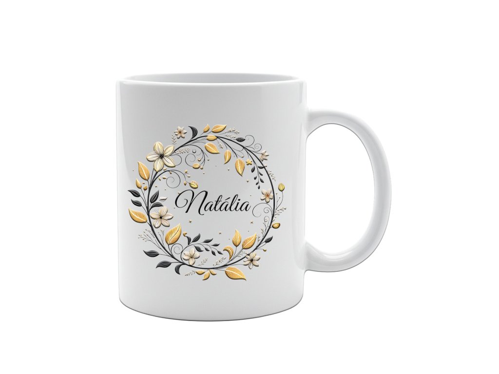 Hrnček s potlačou - kvetinový rám-meno
